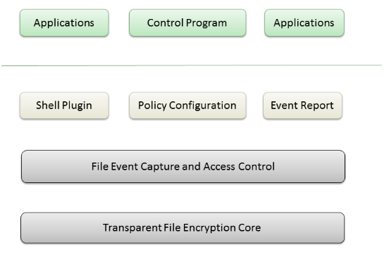 ETEFS_User includes a file access control module and an operation event monitor module. The file access control module is used to restrict the operation on the currently opened file issued by the user according to the access control policy. The operation event monitor is used to capture the user’s action on the encrypted file, such as “file opened” and “file closed” event, etc.